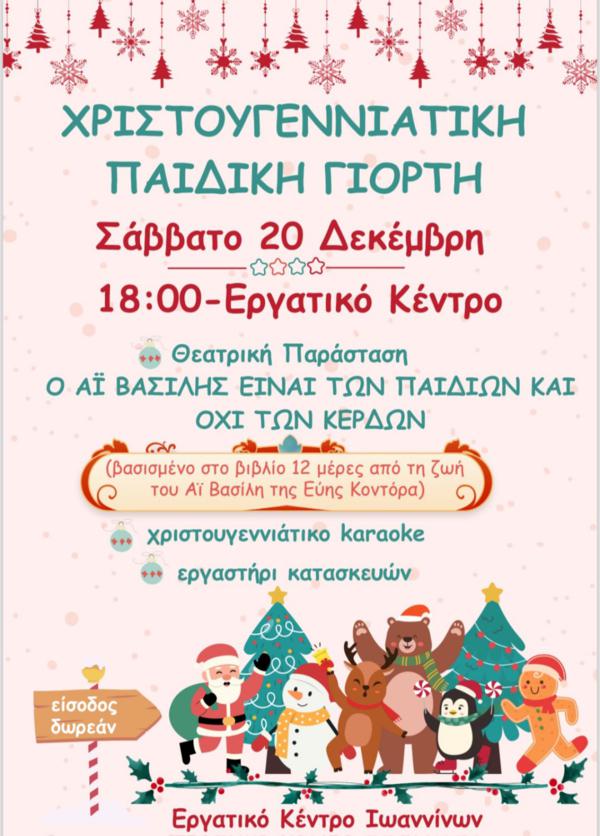 Καλούμε τους μικρούς μας φίλους στη μεγάλη Χριστουγεννιάτικη παιδική γιορτή το Σάββατο