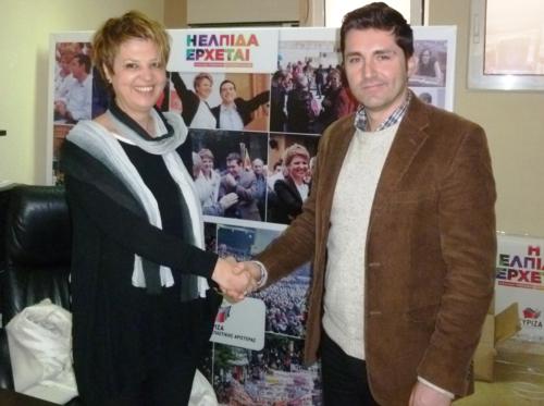 Η βουλευτής Άρτας του ΣΥΡΙΖΑ Όλγα Γεροβασίλη συναντήθηκε την Τρίτη 20 Ιανουαρίου 2015 με τον συντονιστή, στην Άρτα, του Συλλόγου Φυσικών Προσώπων Ομολογιούχων Ελληνικού Δημοσίου κ. Βασίλη Καλαμπόκη.