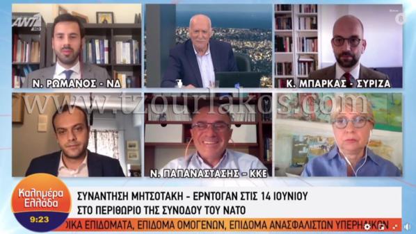 Κλείνοντας την τοποθέτηση του ο κ. Μπάρκας αναφέρθηκε και στην επικείμενη συνάντηση Δένδια - Τσαβούσογλου, καθώς και στο προγραμματισμένο ραντεβού Μητσοτάκη - Ερντογάν στις 14 Ιουνίου, ενώ παράλληλα άφησε αιχμές για την τοποθέτηση του εκπροσώπου του Κομμουνιστικού Κόμματος, σημειώνοντας «Νομίζω ότι ο εκπρόσωπος του ΚΚΕ δίνει βάρος στον αντιπολιτευτικό του λόγο στον ΣΥΡΙΖΑ υπερασπιζόμενος την Νέα Δημοκρατία, είναι εξαιρετικός ο τρόπος με τον οποίο αντιπολιτεύονται. Όσον αφορά την παρέμβαση της Τουρκίας, εγώ έχω περισσότερη εμπιστοσύνη στον Υπουργό Εξωτερικών της χώρας μας, κ. Δένδια, ο οποίος δείχνει μια τάση να υπερασπίζεται τις εθνικές μας γραμμές κόντρα στην κυβερνητική πλειοψηφία της Νέας Δημοκρατίας, η οποία ορισμένες φορές δεν δείχνει αυτήν την τάση. Ο κ. Δένδιας είναι ο μοναδικός της κυβέρνησης ο οποίος έχει αναφερθεί στη Βόρεια Μακεδονία με το όνομά της, τη στιγμή που όλοι οι άλλοι Υπουργοί μιλούν για «γειτονική χώρα», άρα καταλαβαίνετε ότι είναι ο μοναδικός που ακολουθεί τις εθνικές γραμμές, όπως αυτές έχουν χαραχθεί τόσα χρόνια από όλες τις κυβερνήσεις. Με την έννοια αυτή η συνάντηση του κ. Δένδια με τον κ. Τσαβούσογλου είναι πάρα πολύ σημαντική, καθώς εμείς διεκδικούμε τα εθνικά μας ζητήματα, το ένα και μοναδικό πράγμα που χωρίζει την Ελλάδα με την Τουρκία και είναι σαφές ότι διεκδικούμε τις κυρώσεις από την Ευρωπαϊκή Ένωση. Αυτές οι κυρώσεις έχουν αργήσει κοντά στον ενάμιση χρόνο. Aκόμα δεν τις έχουμε δει. Το γεγονός ότι σταματά η συζήτηση για την ενταξιακή πορεία της Τουρκίας στην Ευρώπη είναι μία από τις κυρώσεις, αλλά το γεγονός ότι η Τουρκία προβαίνει σε συνεχείς παραβιάσεις των εθνικών μας χώρων και η Ευρώπη παραμένει άφωνη είναι ένα ζήτημα το οποίο πρέπει να συζητηθεί.».