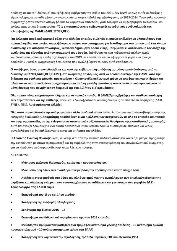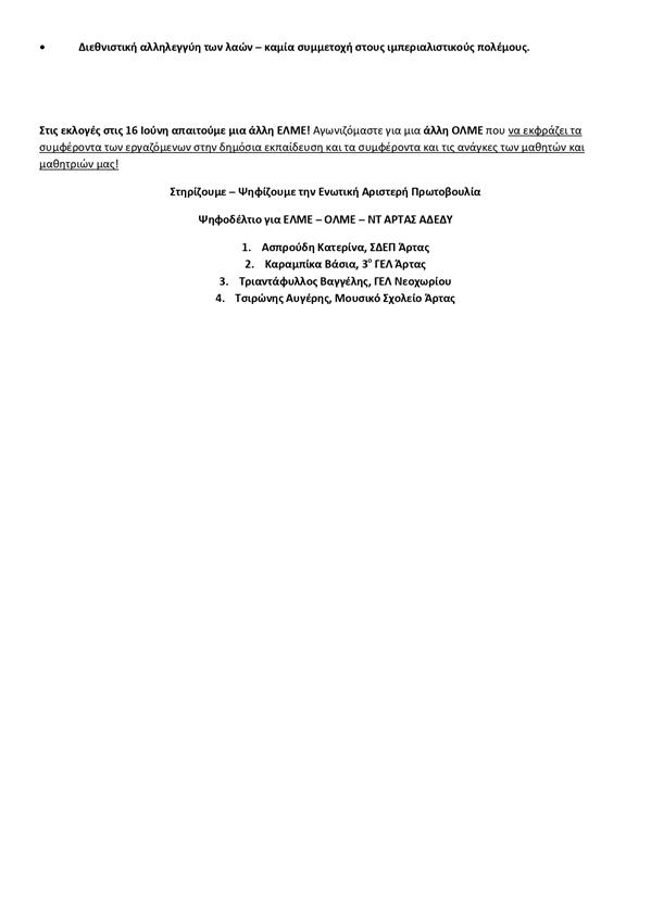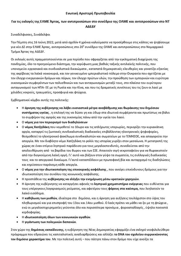 Άρτα.Εκλογές ΕΛΜΕ Πέμπτη 16 Ιουνίου 2022