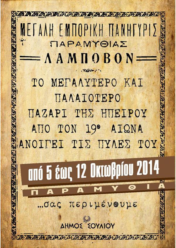 Μεγάλη Εμπορική Πανήγυρις Παραμυθιάς 5--12 Οκτωμβρίου 2014