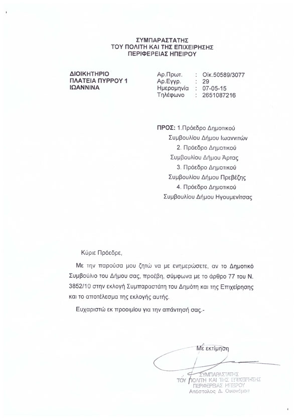 Ενημέρωση από τον Συμπαραστάτη του πολίτη και της επιχείρησης της Περιφέρειας Ηπείρου