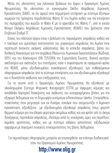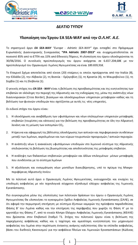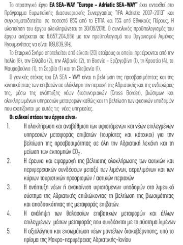 Στα πλαίσια υλοποίησης του έργου, ο Οργανισμός Λιμένος Ηγουμενίτσας