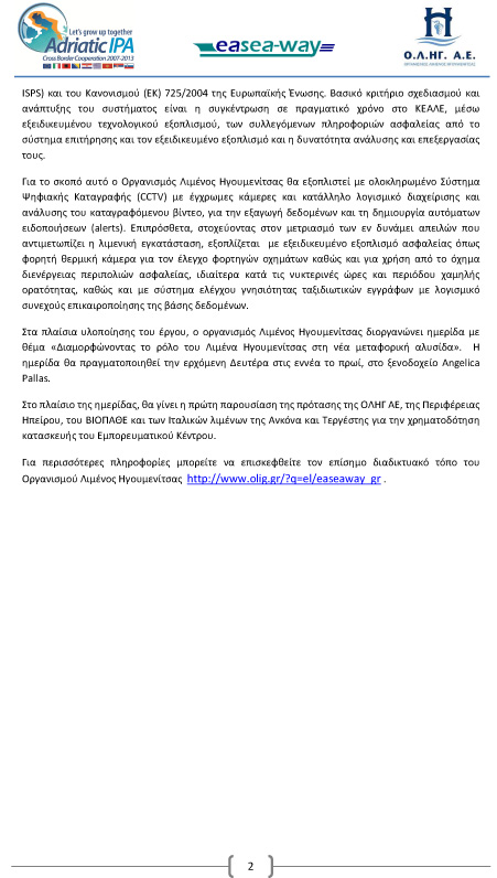 Οργανισμός Λιμένος Ηγουμενίτσας Α.Ε. 29-2-2016.Ημερίδα με θέμα: