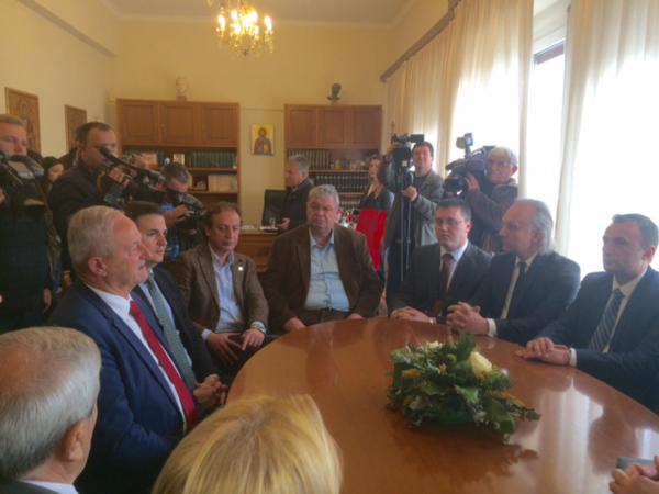 Δηλώσεις μετά την ολοκλήρωση της συνάντησης έκαναν ο Περιφερειάρχης κ. Αλέξανδρος Καχριμάνης, ο Δήμαρχος Θωμάς Μπέγκας και η Ιρένα Τότσι, Γενική Διευθύντρια του Ινστιτούτου Βιβλίου και Προώθησης των Τιράνων, που ήταν επικεφαλής της Αλβανικής Αντιπροσωπείας.