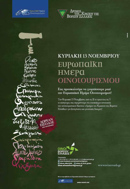 Η Ένωση συμμετέχει φέτος για τέταρτη συνεχή χρονιά στην Ευρωπαϊκή Ημέρα Οινοτουρισμού, την Κυριακή 13 Νοεμβρίου και καλεί, για μια ημέρα, σε υπέροχες διαδρομές του κρασιού με ελεύθερη είσοδο.