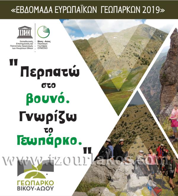 Το Γεωπάρκο Βίκου- Αώου στο διάστημα 9- 28 Ιουλίου 2019 στο πλαίσιο της «ΕΒΔΟΜΑΔΑΣ ΕΥΡΩΠΑΪΚΩΝ ΓΕΩΠΑΡΚΩΝ 2019» διοργανώνει δραστηριότητες με τίτλο: «Περπατώ στο βουνό. Γνωρίζω το Γεωπάρκο».
