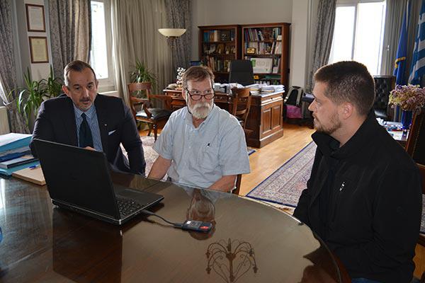 Ο κ. Murray ενημέρωσε τον κ. Αργυρό για την τρισδιάστατη απεικόνιση των επιγραφών του Μνημείου καθώς και των υποδοχών όπου είχαν τοποθετηθεί τα ορειχάλκινα έμβολα από το στόλο των «ηττημένων» της ναυμαχίας του Ακτίου Αντώνιου και Κλεοπάτρας.