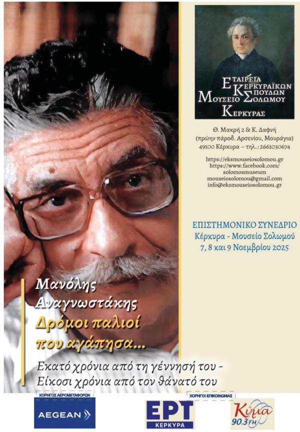 Η Εταιρεία Κερκυραϊκών Σπουδών προχωρά στο Επιστημονικό Συνέδριο αφιερωμένο στον Μανόλη Αναγνωστάκη στις 7, 8 και 9 Νοεμβρίου, στο