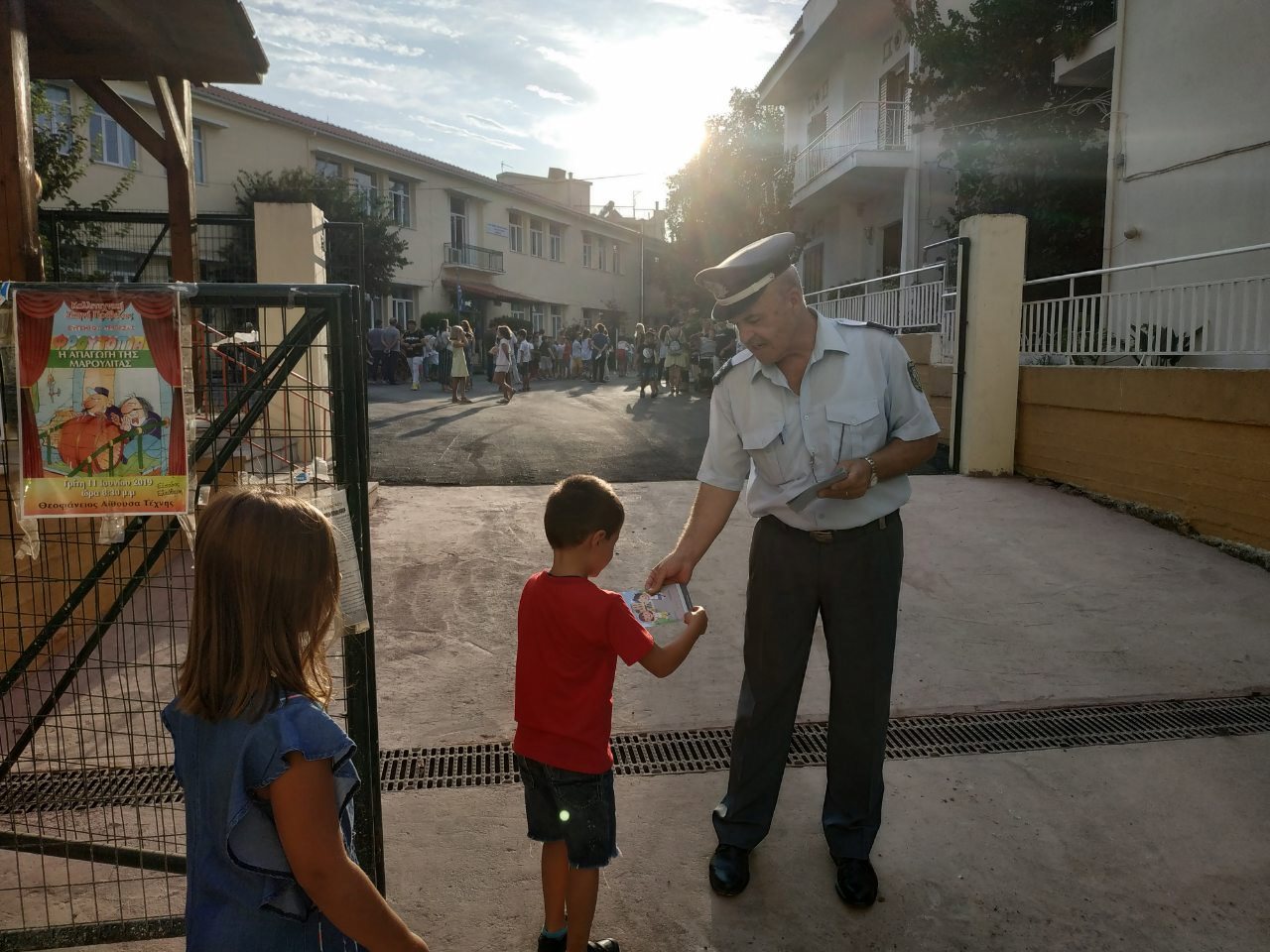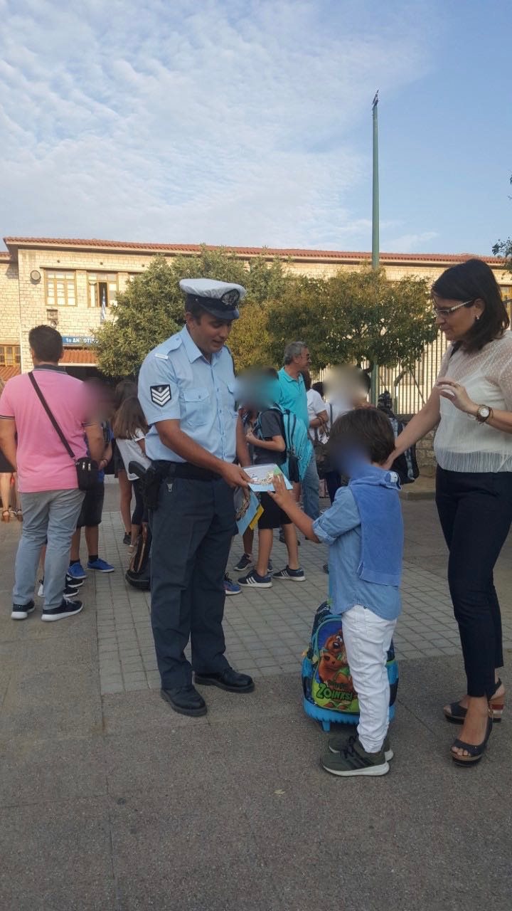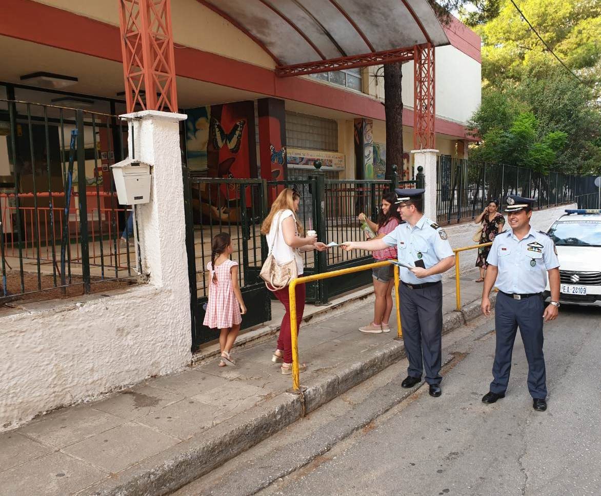 Ειδικότερα, σήμερα (11-9-2019) το πρωί, από αστυνομικούς, διανεμήθηκαν ενημερωτικά φυλλάδια με συμβουλές οδικής ασφάλειας και κυκλοφοριακής αγωγής, για μαθητές και γονείς, σε σχολικά συγκροτήματα, των εξής περιοχών: