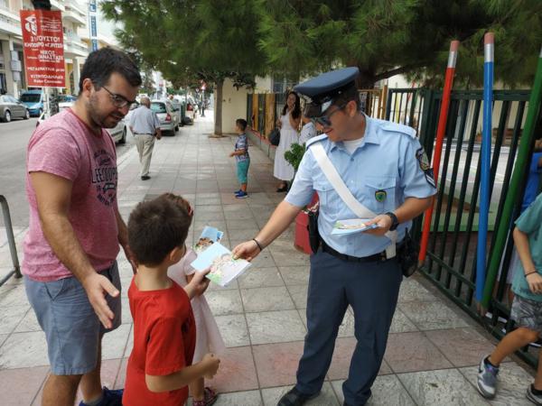 Ενημερωτικά φυλλάδια τροχαίας διανεμήθηκαν από αστυνομικούς σε μαθητές και γονείς