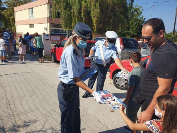 Ενημερωτικά φυλλάδια κυκλοφοριακής αγωγής και οδικής ασφάλειας μοίρασαν σήμερα (14 Σεπτεμβρίου 2020) το πρωί αστυνομικοί, σε μικρούς μαθητές και γονείς κατά την προσέλευση τους στα σχολικά συγκροτήματα των Ιωαννίνων, της Άρτας, της Πρέβεζας και της Θεσπρωτίας.