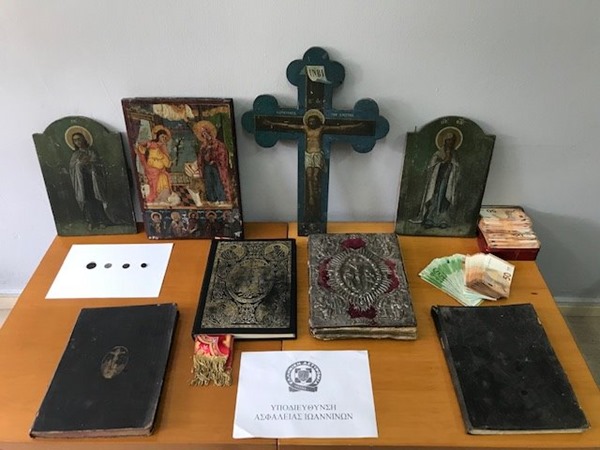 Κατασχέθηκαν Ιερό Ευαγγέλιο και αρχαίο νόμισμα που εμπίπτουν στη σχετική νομοθεσία καθώς και αντικείμενα των οποίων η προέλευση ερευνάται