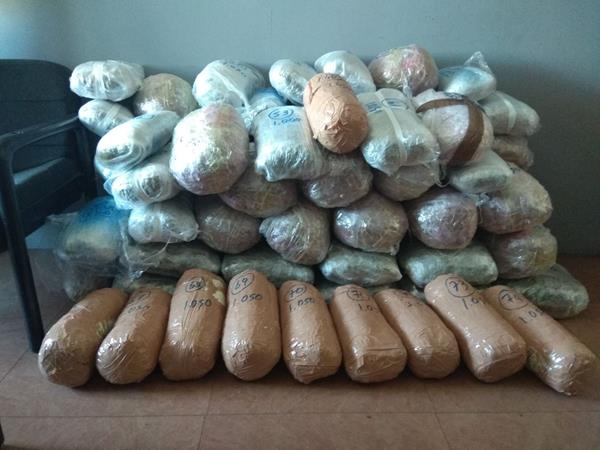 Εντός του αυτοκινήτου βρέθηκαν και κατασχέθηκαν -74- δέματα με ακατέργαστη κάνναβη, συνολικού βάρους -76- κιλών και -500- γραμμαρίων.