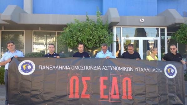 Με κεντρικό σύνθημα «Ως εδώ» εκπρόσωποι συνδικαλιστικών ενώσεων των αστυνομικών απ’ όλη τη χώρα, πραγματοποίησαν το πρωί της Δευτέρας συγκέντρωση διαμαρτυρίας έξω από τα γραφεία της Νέας Δημοκρατίας στην οδό Πειραιώς.