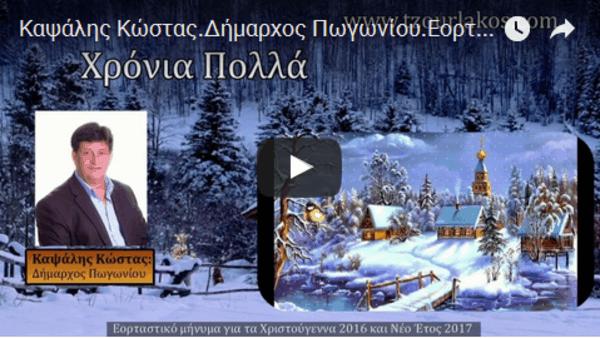 Καψάλης Κώστας: Δήμαρχος Πωγωνίου.Εορταστικό μήνυμα για Χριστούγεννα και Νέο Έτος 2017.