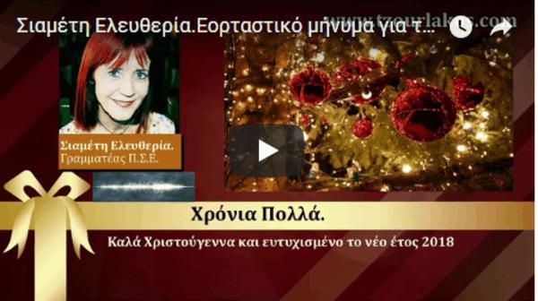 Σιαμέτη Ελευθερία.Γραμματέας Π.Σ.Ε. Εορταστικό ηχητικό μήνυμα για τα Χριστούγεννα 2017 και Νέο Έτος 2018.Ακούστε την.