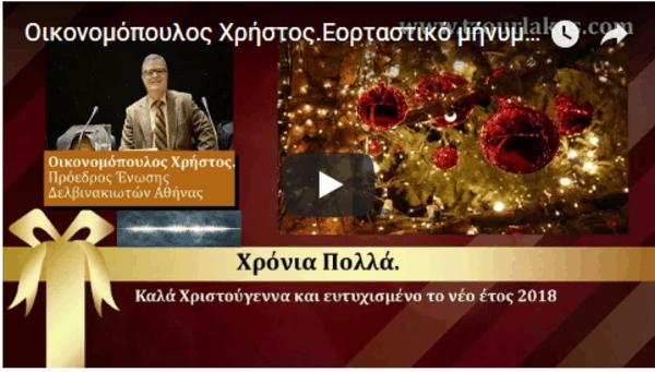 Οικονομόπουλος Χρήστος.Πρόεδρος Ένωσης Δελβινακιωτών Πωγωνίου.Εορταστικό ηχητικό μήνυμα για τα Χριστούγεννα 2017 και Νέο Έτος 2018.Ακούστε τον.