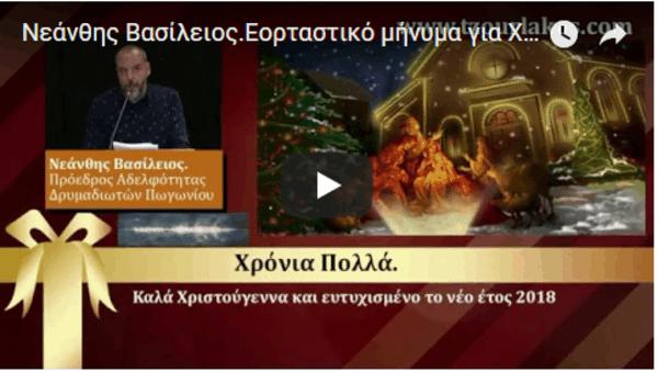 Νεάνθης Βασίλειος. Πρόεδρος Αδελφότητας Δρυμαδιωτών Πωγωνίου.Εορταστικό Μήνυμα για τα Χριστούγεννα 2017 και Νέο Έτος 2018.Ακούστε τον.