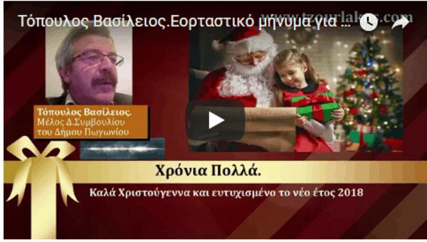 Τόπουλος Βασίλειος.Μέλος Δημοτικού Συμβουλίου Δήμου Πωγωνίου.Εορταστικό μήνυμα για τα Χριστούγεννα 2017 και Νέο Έτος 2018.Ακούστε τον.