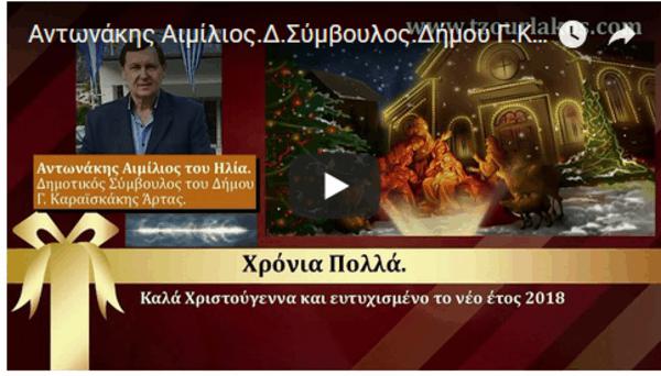 Αντωνάκης Αιμίλιος του Ηλία.Δημοτικός Σύμβουλος του Δήμου Γ. Καραϊσκάκης Άρτας.Εορταστικό ηχητικό μήνυμα για τα Χριστούγεννα 2017 και Νέο Έτος 2018.Ακούστε τον.