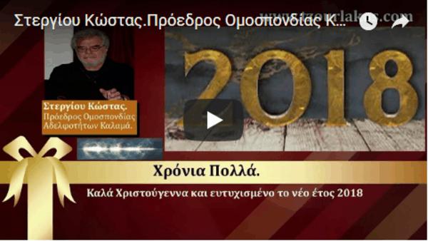 Στεργίου Κώστας.Πρόεδρος Ομοσπονδίας Αδελφοτήτων Καλαμά.Εορταστικό ηχητικό μήνυμα για Χριστούγεννα 2017 και Νέο Έτος 2018.Ακούστε τον.