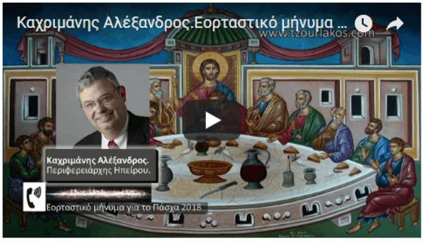 Καχριμάνης Αλ.Περιφερειάρχης Ηπείρου.Ηχογραφημένο Εορταστικό μήνυμα για την Εορτή του Πάσχα 2018.