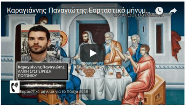 Καραγιάννης Παναγιώτης.''ΛΑΪΚΗ ΣΥΣΠΕΙΡΩΣΗ'' Πωγωνίου. Ηχογραφημένο εορταστικό μήνυμα για την Εορτή του Πάσχα 2018.