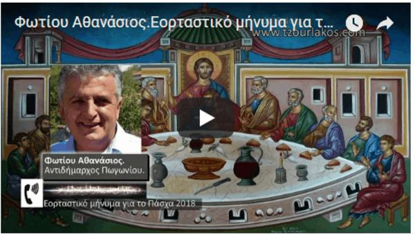Φωτίου Αθανάσιος.Αντιδήμαρχος Πωγωνίου.Ηχογραφημένο Εορταστικό μήνυμα για την Εορτή του Πάσχα 2018.