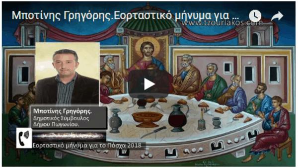 Μποτίνης Γρηγόρης.Δημοτικός Σύμβουλος δήμου Πωγωνίου.Ηχογραφημένο Εορταστικό μήνυμα για την Εορτή του Πάσχα 2018.