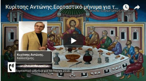 Κυρίτσης Αντώνης.Καλλιτέχνης.Ηχογραφημένο Εορταστικό μήνυμα για την Εορτή του Πάσχα 2018.