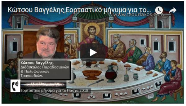 Κώτσου Βαγγέλης.Διδάσκαλος Παραδοσιακών & Πολυφωνικών τραγουδιών.Ηχογραφημένο Εορταστικό μήνυμα για την Εορτή του Πάσχα 2018.