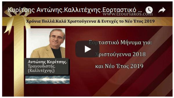 Κυρίτσης Αντώνης.Καλλιτέχνης.Ηχογραφημένο Εορταστικό μήνυμα για Χριστούγεννα 2018 & Νέο Έτος 2019.