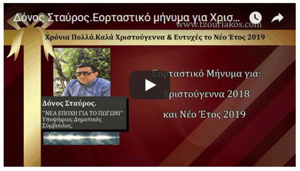 Δόνος Σταύρος.Ηχογραφημένο Εορταστικό μήνυμα για Χριστούγεννα 2018 & Νέο Έτος 2019.
