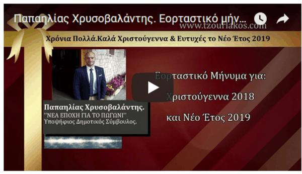 Παπαηλίας Χρυσοβαλάντης.Εορταστικό μήνυμα για Χριστούγεννα 2018 & Νέο Έτος 2019.