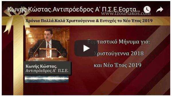 Κωνής Κώστας.Αντιπρόεδρος Α' Π.Σ.Ε.Ηχογραφημένο Εορταστικό μήνυμα για Χριστούγεννα 2018 & Νέο Έτος 2019.