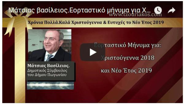 Μάτσιας Βασίλειος.Δημοτικός Σύμβουλος του Δήμου Πωγωνίου.Ηχογραφημένο Εορταστικό μήνυμα για Χριστούγεννα 2018 & Νέο Έτος 2019.
