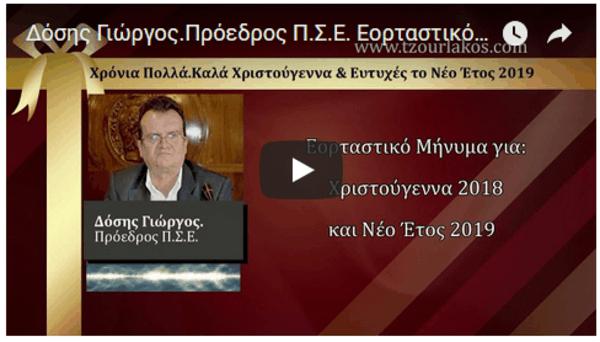 Δόσης Γιώργος.Πρόεδρος Π.Σ.Ε. Ηχογραφημένο Εορταστικό μήνυμα για Χριστούγεννα 2018 & Νέο Έτος 2019.