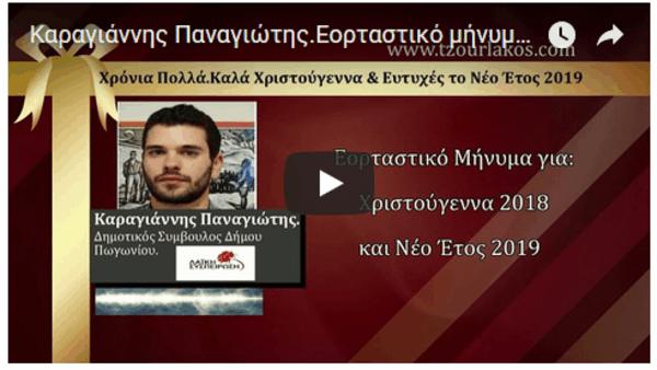 Καραγιάννης Παναγιώτης. Δημοτικός Σύμβουλος του Δήμου Πωγωνίου.Ηχογραφημένο Εορταστικό μήνυμα για Χριστούγεννα 2018 & Νέο Έτος 2019.
