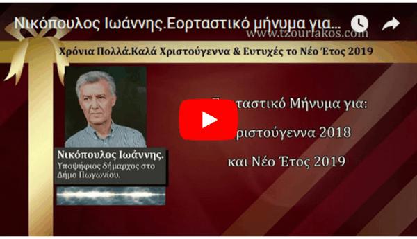 Νικόπουλος Ιωάννης.Υποψήφιος Δήμαρχος στο Δήμο Πωγωνίου.Ηχογραφημένο Εορταστικό μήνυμα για Χριστούγεννα 2018 & Νέο Έτος 2019.