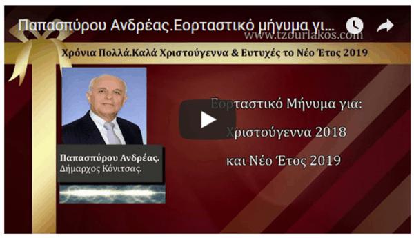 Παπασπύρου Ανδρέας.Δήμαρχος Κόνιτσας.Ηχογραφημένο Εορταστικό μήνυμα για Χριστούγεννα 2018 & Νέο Έτος 2019.