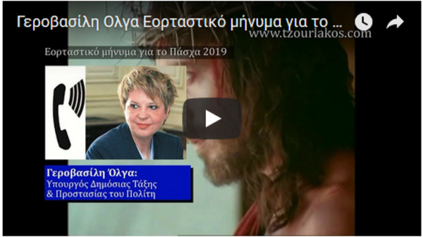 Γεροβασίλη Όλγα.Υπουργός Προστασίας του Πολίτη.Ηχογραφημένο Εορταστικό μήνυμα για το Πάσχα 2019.Ακούστε τη.