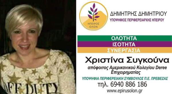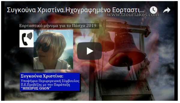 Συγκούνα Χριστίνα.Υποψήφια Περιφερειακή Σύμβουλος στην Π.Ε.Πρέβεζας..Ηχογραφημένο Εορταστικό μήνυμα για το Πάσχα 2019.Ακούστε τη.