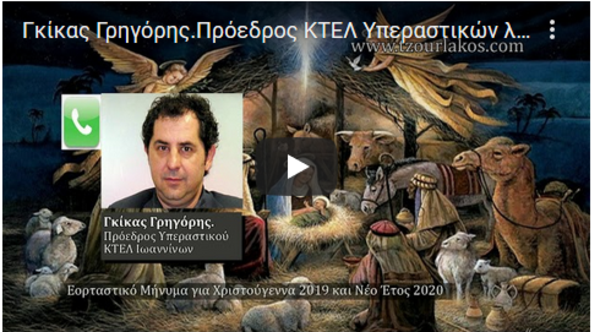 Γκίκας Γρηγόρης.Πρόεδρος ΚΤΕΛ υπεραστικών λεωφορείων Ν.Ιωαννίνων.Ηχογραφημένο Εορταστικό μήνυμα για Χριστούγεννα 2019 και Νέο Έτος 2020.Ακούστε τον.
