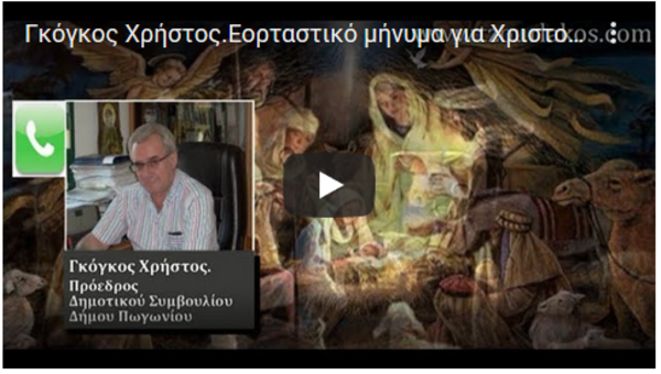 Γκόγκος Χρήστος.Πρόεδρος Δημοτικού Συμβουλίου Δήμου Πωγωνίου Ιωαννίνων.Ηχογραφημένο Εορταστικό Μήνυμα για Χριστούγεννα 2019 και Νέο Έτος 2020.Ακούστε τον.