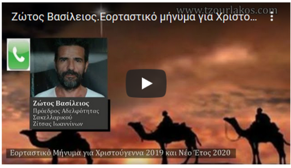 Ζώτος Βασίλειος.Πρόεδρος Αδελφότητας Σακελλαρικού Ζίτσας Ιωαννίνων.Ηχογραφημένο Εορταστικό μήνυμα για Χριστούγεννα 2019 και Νέο Έτος 2020.Ακούστε τον.