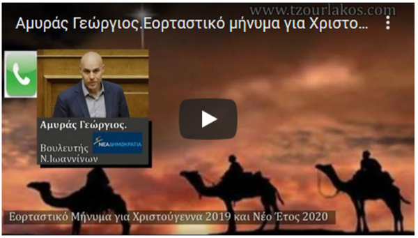 Αμυράς Γεώργιος.Βουλευτής Ν.Ιωαννίνων ''ΝΕΑ ΔΗΜΟΚΡΑΤΙΑ''.Ηχογραφημένο Εορταστικό μήνυμα για Χριστούγεννα 2019 κια Νέο Έτος 2020.Ακούστε τον.