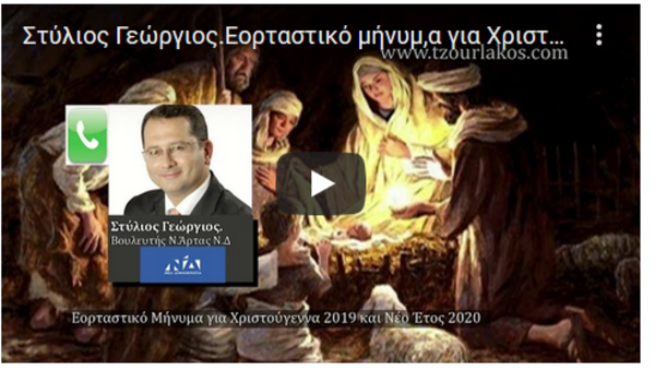 Στύλιος Γεώργιος.Βουλευτής Ν.Άρτας Ν.Δ.Ηχογραφημένο Εορταστικό μήνυμα για Χριστούγεννα 2019 και Νέο Έτος 2020.Ακούστε το.