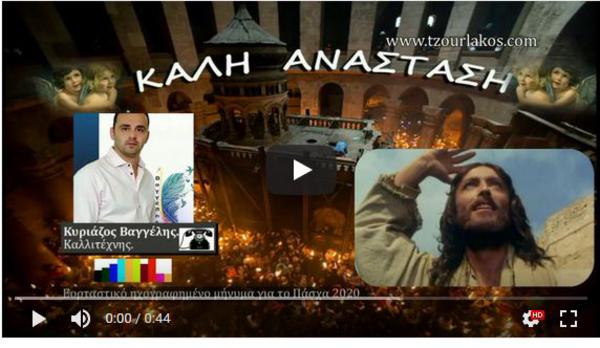 Κυριάζος Βαγγέλης.Καλλιτέχνης (τραγουδιστής δημοτικού τραγουδιού).Εορταστικό ηχογραφημένο μήνυμα για το Πάσχα 2020.Ακούστε τον.