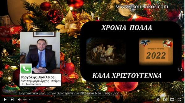 Γοργόλης Βασίλειος.Αντιπεριφερειάρχης Ηπείρου.Εορταστικό ηχητικό μήνυμα για Χριστούγεννα 2021 και Νέο Έτος 2022.Ακούστε τον.